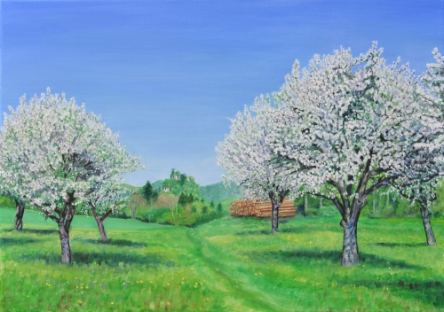 Blühender Obstgarten, 5/2020, Öl auf Leinwand 60x70cm