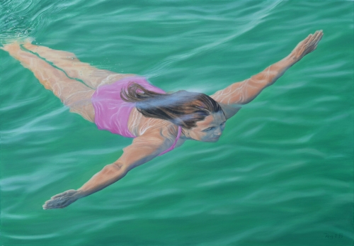 Schwimmen, 10/2020. Öl auf Leinwand, 70x100cm