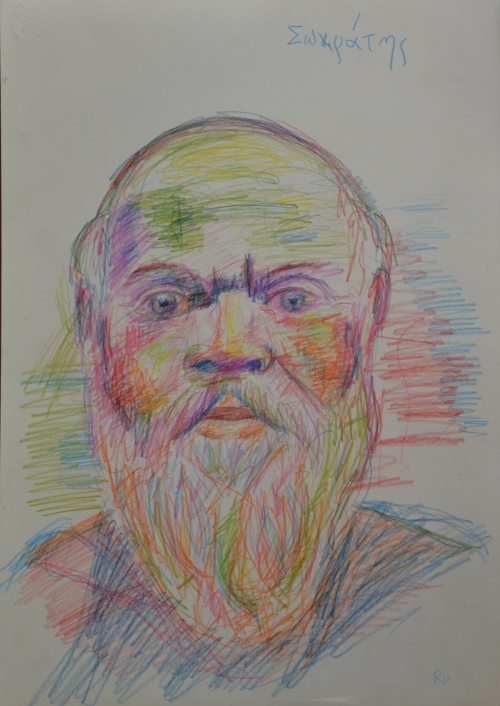 Sokrates, 1971, Farbstifte auf Papier, 31x44cm